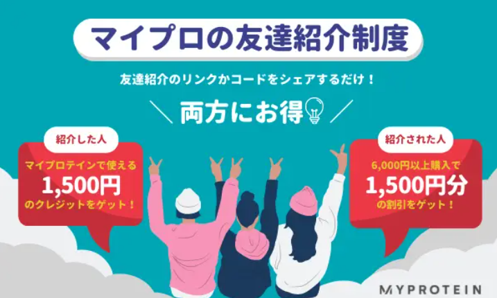 紹介者は1,500円分のクレジットがもらえ、紹介したお友達には初回購入時に6,000円以上購入での1,500円分の割引をプレゼント。